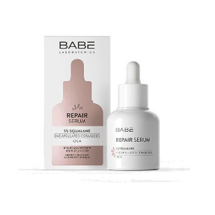 Sérum reparador. Hidrata, fortalece, acalma e regenera a pele. Proporciona suavidade e conforto mesmo às peles sensíveis e/ou delicadas. BABÉ Repair Serum é um regenerador da barreira cutânea graças à combinação sinérgica de ingredientes activos como as Ceramidas encapsuladas, a Niacinamida e o CICA. A sua fórmula hidrata profundamente a pele de imediato e durante muito tempo graças ao esqualano, ao ácido hialurónico de alto e médio peso molecular. A sua composição com prebióticos e pós-bióticos mantém e equilibra o microbioma da pele. Oferece uma textura muito ligeira, de rápida absorção, que não engordura a pele e deixa um acabamento de efeito película muito agradável para as peles sensibilizadas.