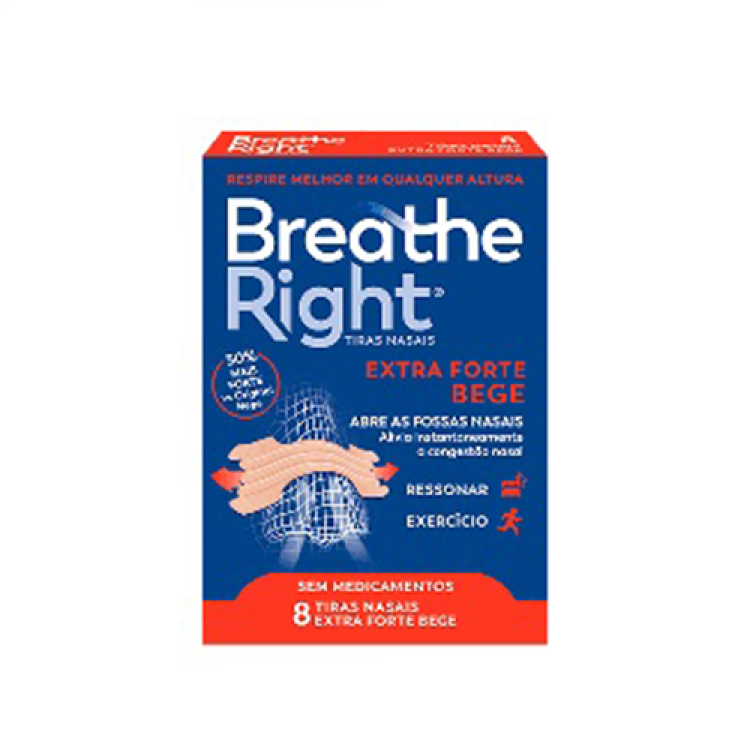 As Tiras Nasais Breath Right são bandas flexíveis tipo mola que levantam e abrem suavemente as narinas para melhorar o fluxo de ar, ajudando-o a respirar melhor. As Breathe Right® aliviam instantaneamente a congestão nasal que pode surgir de constipações, alergias e de um desvio do septo. As nossas Tiras Nasais Extra forte Beges são 50% mais fortes que as tiras beges normais. As Tiras Nasais Breathe Right podem ser usadas para abrir as narinas, para que assim possa respirar mais facilmente, ajudando a reduzir o ressonar, para um bem-estar geral ou quando está simplesmente a relaxar.