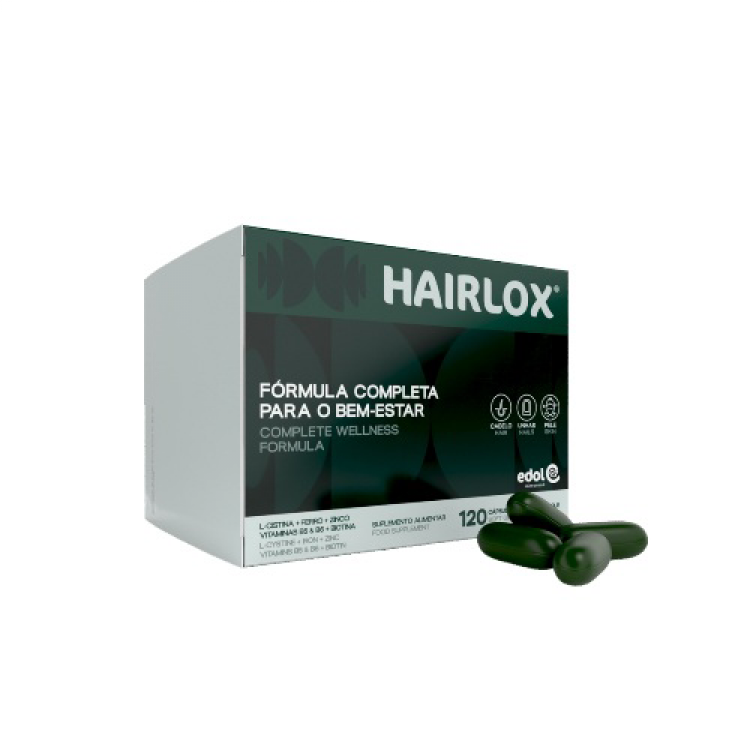 Hairlox contém zinco, que contribui para a manutenção de um cabelo normal e de unhas normais, e biotina, que contribui para a manutenção de um cabelo normal. Hairlox é um suplemento alimentar rico em minerais, vitaminas e biotina. A fórmula típica contém: L-cistina – aminoácido importante para a formação de queratina. Biotina (Vitamina B8) – contribui para a manutenção de cabelo normal. Ferro – pode ajudar no metabolismo energético e na redução da fadiga. Zinco – participa na manutenção de cabelo, unhas e pele saudáveis. Vitaminas B5 e B6 – apoiam o metabolismo energético e outras funções. Outros componentes incluem óleo de girassol, agentes de revestimento (gelatina), corantes e emulsificantes típicos de suplementos.