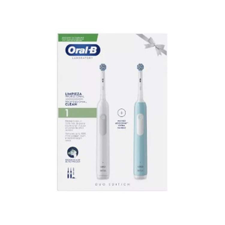 A Oral-B Pro Series 1 Escova de Dentes Elétrica – Duo Edition é um pack especial que inclui duas escovas elétricas para uma limpeza profissional e eficaz, com funcionalidades como temporizador e controlo de pressão. Características Principais Tecnologia de Limpeza 3D: As escovas oscilam, giram e pulsam para remover até 100% mais placa bacteriana em comparação com uma escova de dentes manual. Controlo de Pressão nas Gengivas: Possui um sensor de pressão sonoro que alerta se estiver a escovar com demasiada força, protegendo as gengivas sensíveis. Temporizador Integrado: Ajuda a garantir que escova os dentes durante os dois minutos recomendados pelos dentistas, com alertas a cada 30 segundos para mudar de área da boca. Bateria de Longa Duração: A bateria integrada oferece uma utilização prolongada com um único carregamento.