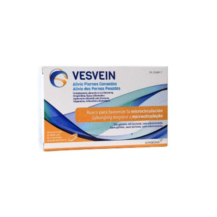 O Vesvein Comp X60 é a versão de 60 comprimidos do suplemento para alívio de pernas cansadas e sintomas associados ao retorno venoso. A formulação listada para a linha Vesvein inclui diosmina, hesperidina, bromelaína e rusco, com ação orientada para sensação de peso, inchaço e desconforto nas pernas.