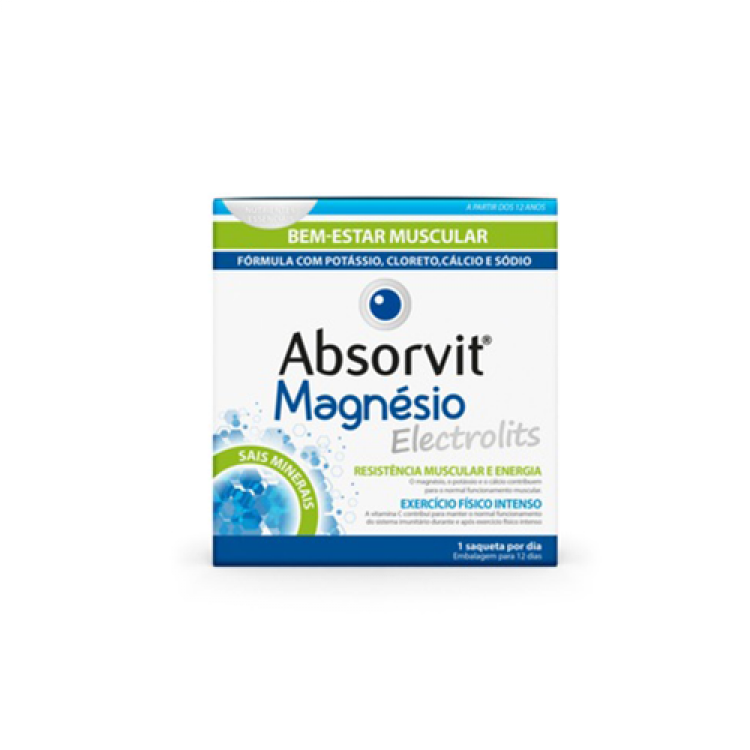 Absorvit Magnésio Electrolits é um suplemento alimentar com uma fórmula completa que combina magnésio, potássio, sódio, cálcio, cloreto e vitamina C, ajudando a manter o equilíbrio eletrolítico, a função muscular normal e a reduzir o cansaço e a fadiga.