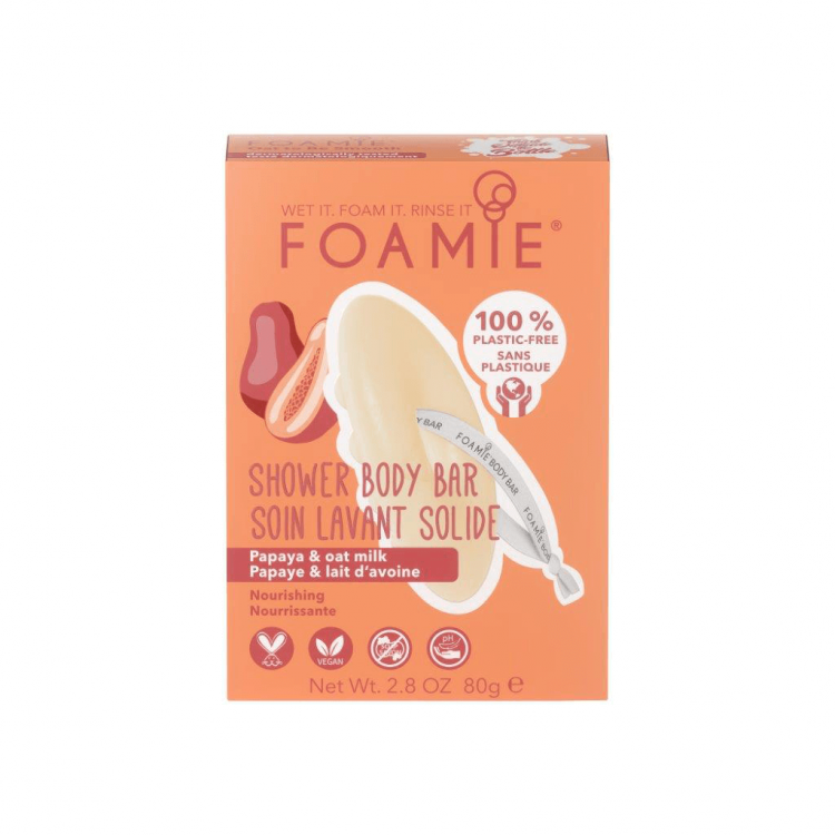 Foamie Body Bar Papaia & Leite de Aveia é um cuidado de higiene corporal com ação nutritiva, indicado para todos os tipos de pele. Limpa suavemente a pele, nutre e proporciona uma massagem relaxante pelo corpo.