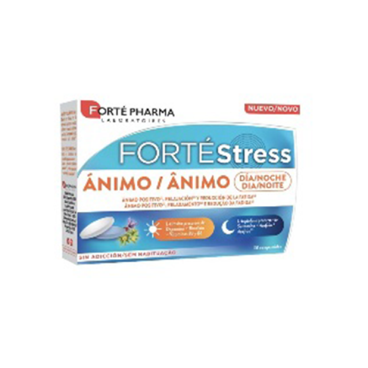 Forté Stress Mood baseia-se na cronobiologia com uma ação diurna e nocturna. O comprimido diurno contém rhodiola, que ajuda o organismo a adaptar-se ao stress emocional e contribui para uma atividade mental e cognitiva óptima, e é enriquecido com dois aminoácidos precursores da dopamina: a L-fenilamanina e a L-tirosina. O comprimido de noite contém açafrão para favorecer o bom humor e o relaxamento, troptofano como precursor da serotonina e vitaminas B3 e B5 para ajudar a reduzir o cansaço e a fadiga.